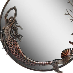 Feel the flowing rhythm of the sea with our Mermaid Dance Wall Mirror. Effortlessly swimming among the fields of coral, starfish and seashells, she frames a distinctively coastal wall mirror for your seaside home. Metal frame and sculpted accents.