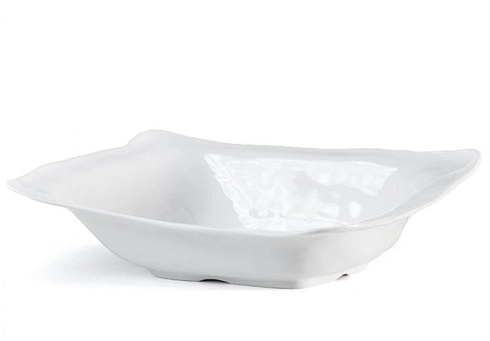 This dramatic square white dinnerware features an undulating Ocean Swell design that sets a distinctive table for your seaside home no matter the season. Easy-care, non-breakable melamine, in a thicker double-weight, gives each piece the appearance of fine porcelain - inspiring you to live elegantly every day, indoors, outdoors or onboard!