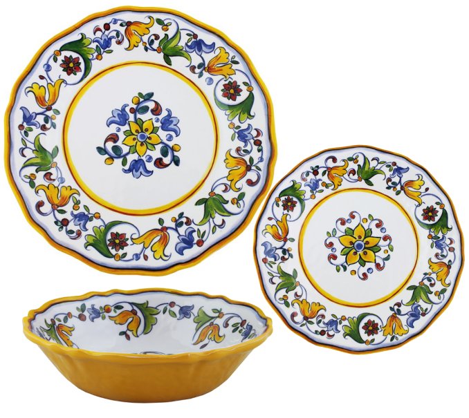 Our Old World Collection is inspired by the rich heritage and designs of the iconic locales around the Mediterranean Sea. This Luxury Melamine Dinnerware is made of the finest quality triple-weight melamine. At first glance it looks like richly glazed stoneware. You won't be able to tell its non-breakable melamine until you pick it up.
