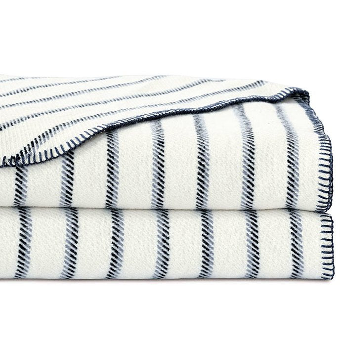 Add an Italian linen duvet cover and a matching sham or two, and you've just turned the kid's room into a sophisticated beach retreat! Look closely, and you'll see that even the blanket, throws and shams feature an updated, contemporary stitch design in midnight navy and slate blue. The blanket and throw also offer the perfect layering options for chilly nights.